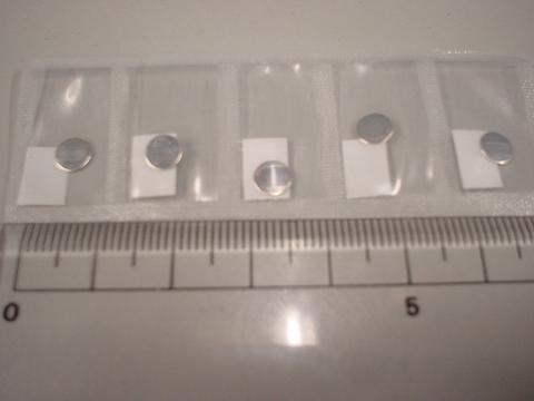 MEGでは日本アイソトープ協会の工業用ガンマ線源(512タイプ)を使用している。また、直径5mm程度のα線源(写真)も、ガンマ線源とともに液体キセノン中で使用している。